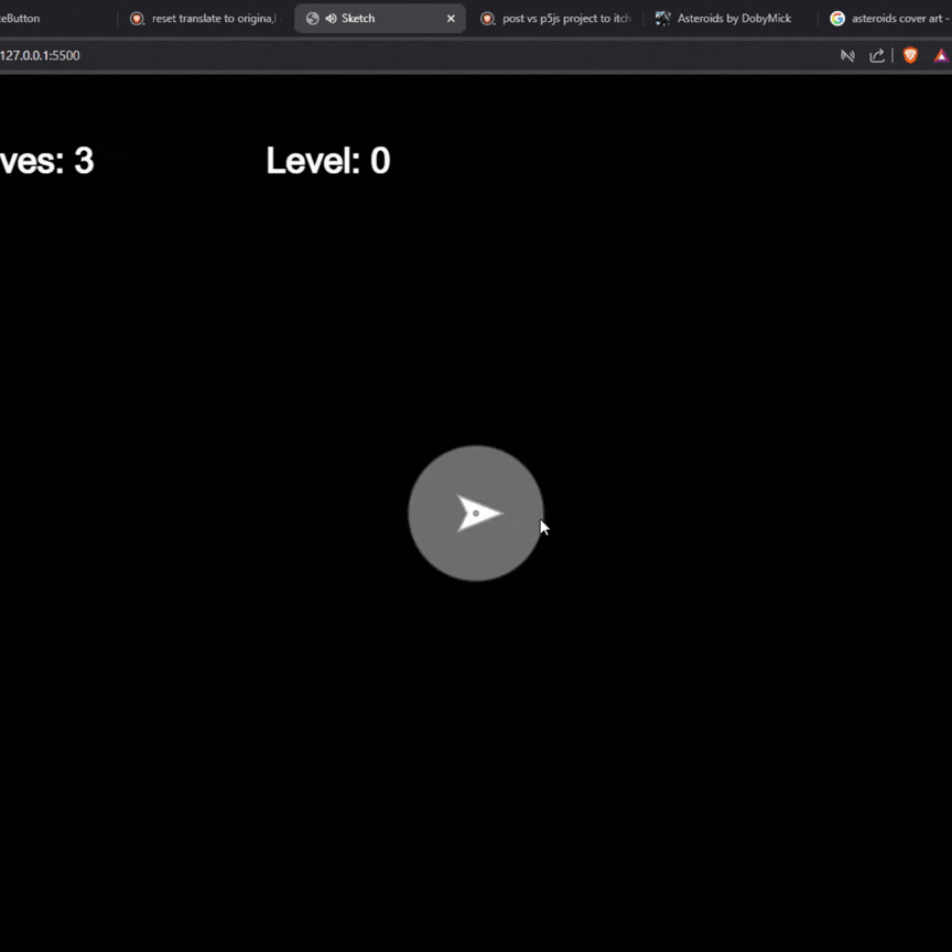 This is the classic game asteroids coded in js! Shoot the asteroids to destroy them into smaller chunks, get higher score from smaller asteroids and saucers that fly by and try to destroy you!